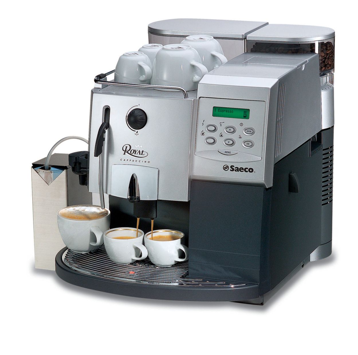 Saeco Royal Coffee Bar User Manual Espressotec from img.yumpu.com We proudly roast our coffee beans ourselves! Attach the portafilter to the group. Prevent milk circuits from clogging up by using the philips saeco milk circuit cleaner ca6705. Premium office coffee machine rentals we supply manual and automated coffee machines to rent or purchase for residential or commercial use. Saeco royal professional & cappuccino series machines 1) place a large bowl under hot water spout. At this point the machine will start dispensing the descaling solution. Breville barista express bes870xl espresso machine brushed stainless $699.95. 2) switch the machine on and press hot water button.